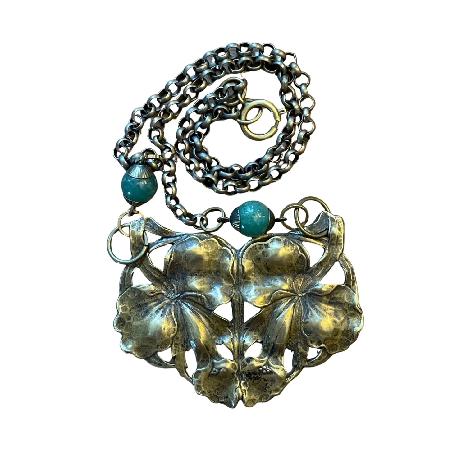 Stamped “BR TAXCO 925” with an eagle assay mark, this necklace is attributed to the BR workshop of Taxco, Mexico — a region celebrated for its vibrant tradition of silversmithing and bold modernist design. The piece reflects the craftsmanship and sculptural precision that defined Taxco silver in the 1960s and 1970s, with its smooth geometric forms and distinctive stone inlay work.